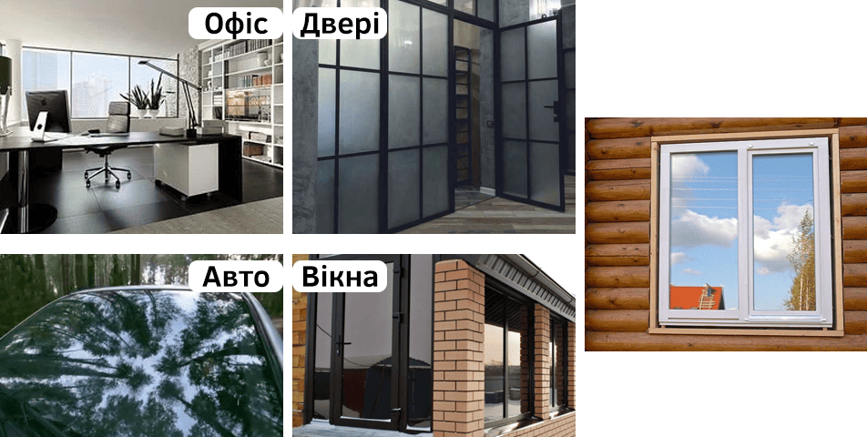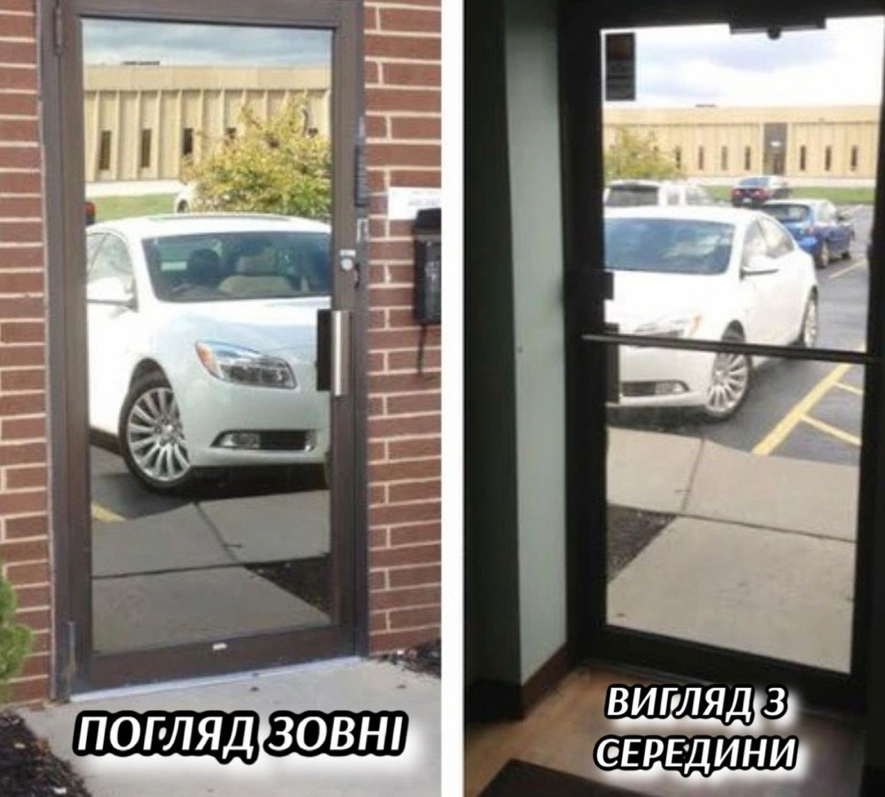 1. Надає віддзеркалення з зовнішньої сторони — та прозорість з внутрішньої