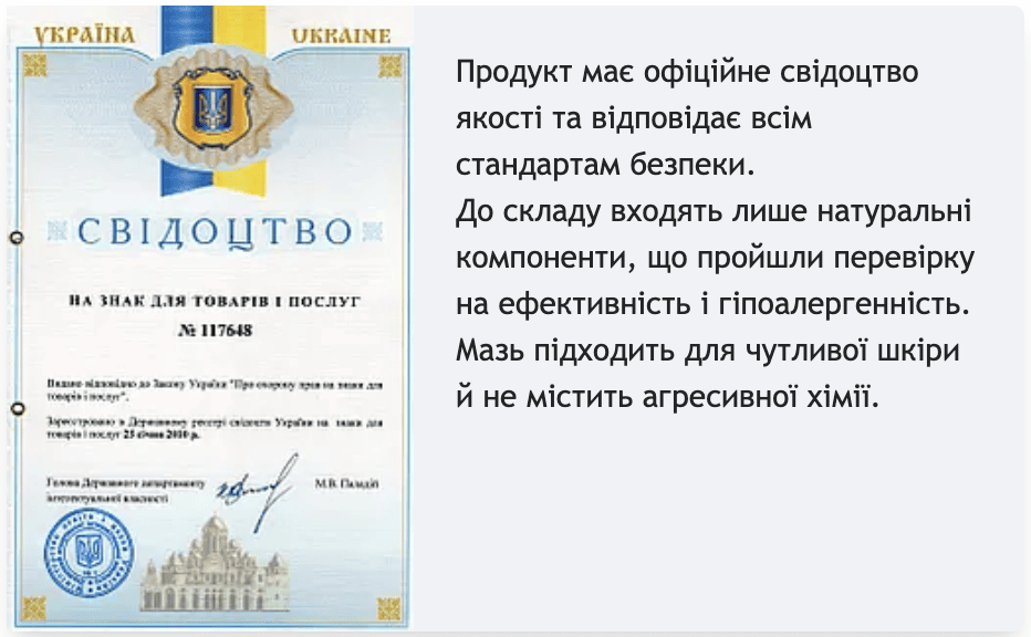 - Спосіб застосування:Наносити тонким шаром на чисту суху шкіру 2–3 рази на день, можна під марлю