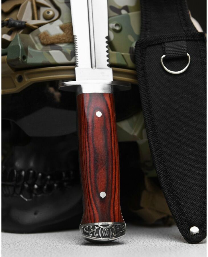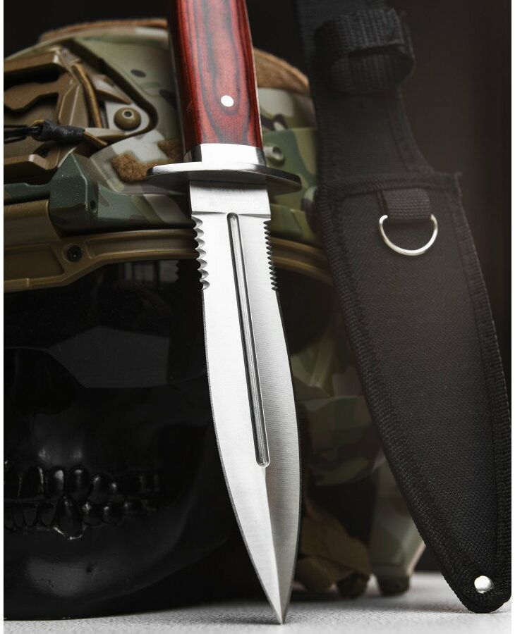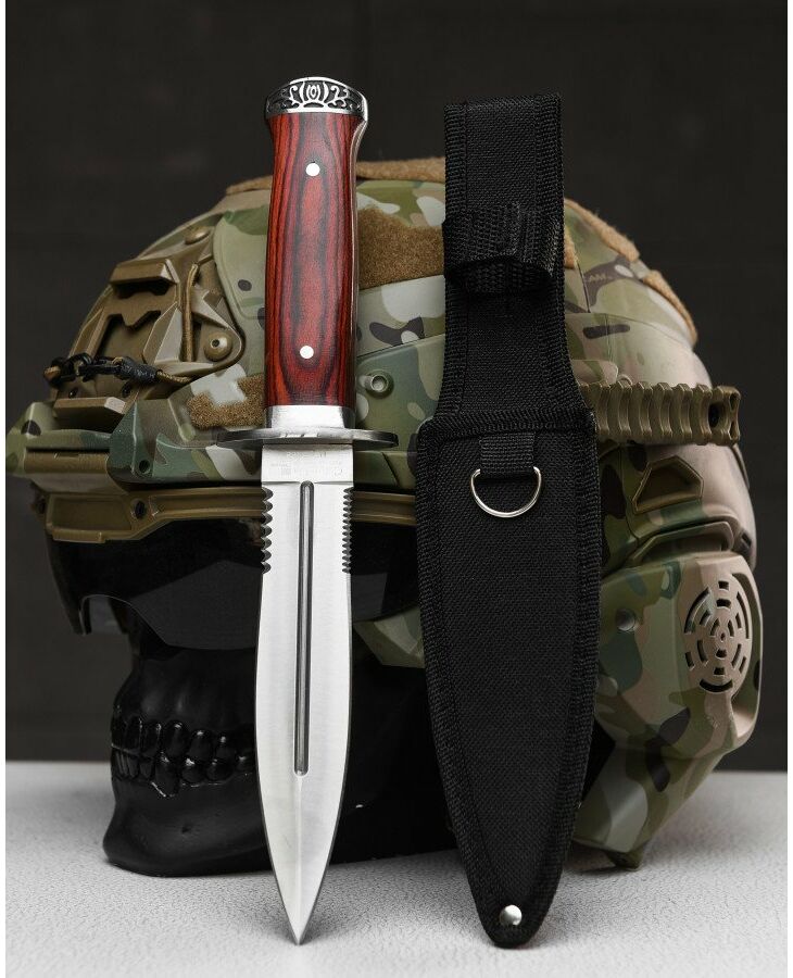 Класичний кинджальний профіль надає йому ефектного вигляду, а дерев’яна рукоять забезпечує ідеальний хват.