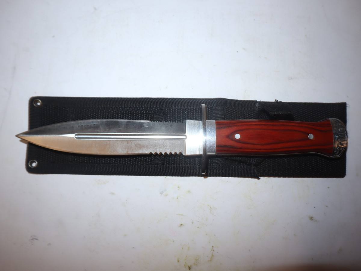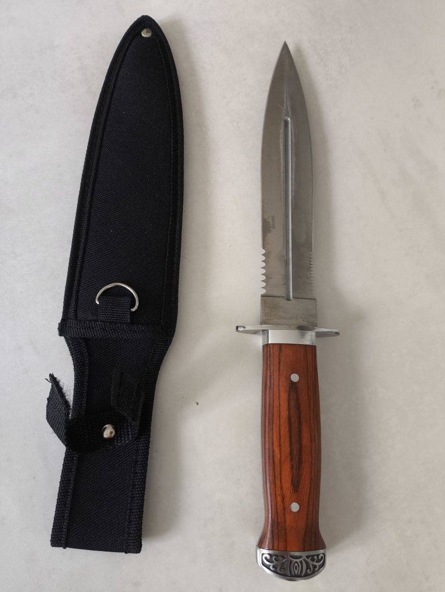 Цей ніж відрізняється високою якістю і має гостре лезо з зубцями по 3 см з обох боків.